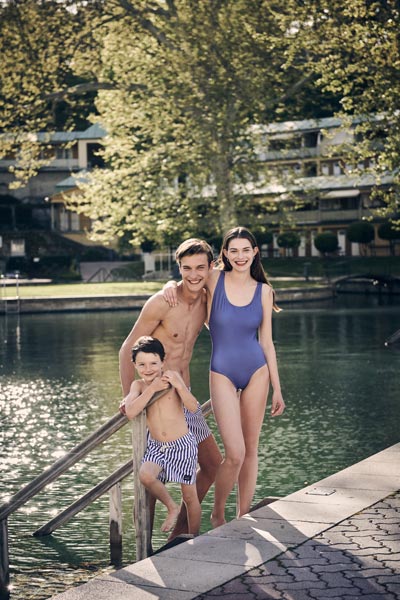 11 June 2019 According to the weather forecast (fast checked today), the current heatwave will roll over the east of Austria until next Sunday; more than 30° Celsius are predicted. Right in time, Thermalbad Vöslau - by train around 30 minutes from Vienna, launched the new collection of swimwear available at the bath's own shop and online. Since 2015, Thermalbad Vöslau offers a range of swim, bath und sun related items by Austrian designers. The latest swimwear is designed by Poleit. Special highlight of the swimwear for women, men and kids is the used material: It's recycled from ocean and beach plastic. fig.: Thermalbad Vöslau swimwear collection by Poleit; launched in June 2019. Photo: © Michael Brus. |