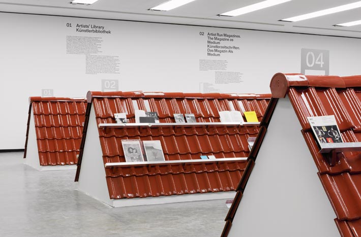 8 November 2017 From today until 28 January 2018, the ones who are interested in books, magazines, journals, websites about art and/or produced by artists between the years 1989 (the year marks the fall of the Berlin wall and the early beginnings of digitally driven communication) will find an extensive collection of publications at Kunsthalle Wien at MuseumsQuartier, Museumsplatz 1 in the city's 7th district. The exhibition 'Publishing as an Artistic Toolbox: 1989–2017' throws light on publishing on printed and digital pages from various perspectives such as magazines which became additionally book publishers, artists who use magazines for interventions with especially for the medium created artworks to a library which is curated by artists like Heimo Zobernig, Liam Gillick, Willem de Rooij, or Florian Pumhösl. Each of the library's artists selected three books which had an impact on their personal view on publishing. The selections are accompanied by short statements concerning the choice. 'Artists' Library' is one of the thematic chapters of the exhibition. Another one is 'Artist-Run Magazines. The 'Magazine As Medium' with issues of publications like Point d’ironie (Christian Boltanski, Hans Ulrich Obrist), Maayan Magazine (Roy Arad, Joshua Simon), or Toilet Paper (Maurizio Cattelan, Pierpaolo Ferrari) - last mentioned magazine publishes additionally online content such as references to the fashion world, an own Spotify playlist or an online shop containing clothes, books, jewels, interoir design objects,... With other chapters like 'The Bookshop As Medium' (concerning art that exists exclusively in book form), 'Design As Medium' (focus graphic design), or 'Post-Digital Publishing Archive' (publications and digital technologies), the exhibition provides a wide spectrum of insights into the multifaceted world of art related publishing. fig.: Exhibition view of 'Publishing as an Artistic Toolbox: 1989–2017' at Kunsthalle Wien 2017, Photo: (C) Stephan Wyckoff www.stephanwyckoff.com.