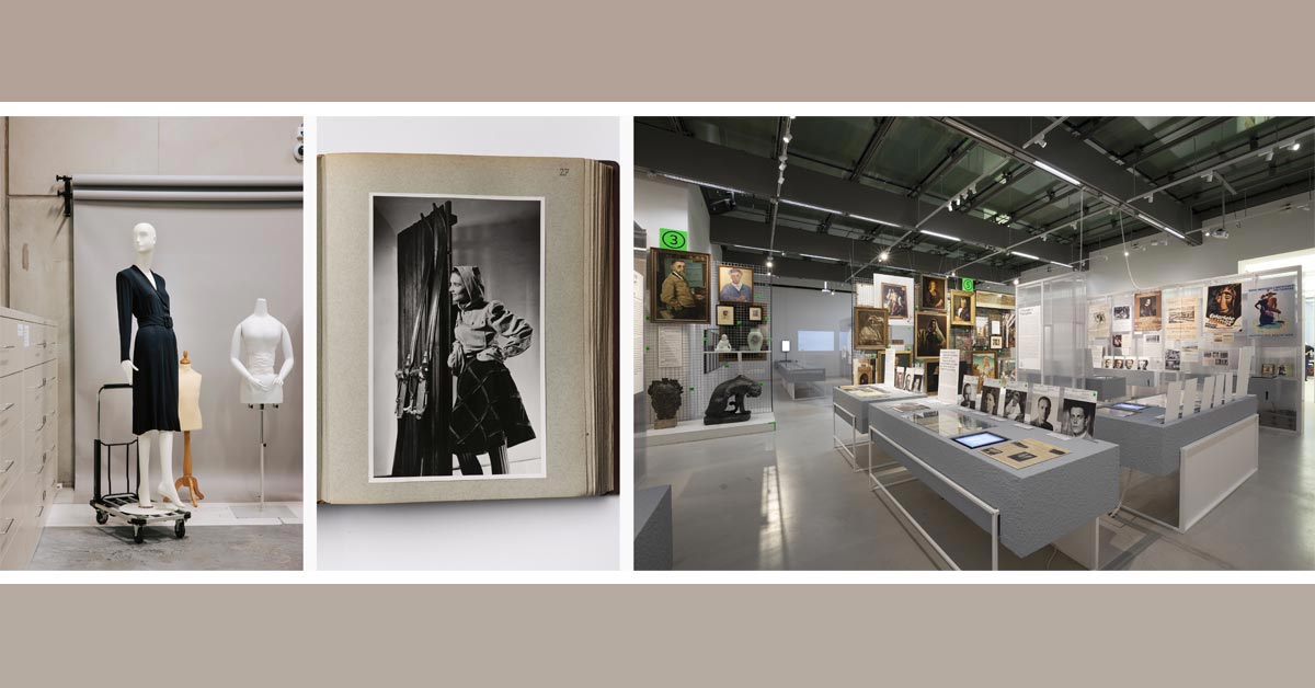 Images, from left: House of Fashion, Demonstration Dress (Coat Dress), 1942; Wien Museum. Photo: Paul Bauer; © Wien Museum. Middle: Fashion photography 'House of Fashion', ca. 1939-1942; Wien Museum. Photo: Paul Bauer; © Wien Museum. Right: Wien Museum MUSA 'Vienna Falls in Line. The Politics of Art under National Socialism' (14 October 2021 to 24 April 2022), exhibition view. Photo: Lisa Rastl; © Wien Museum.