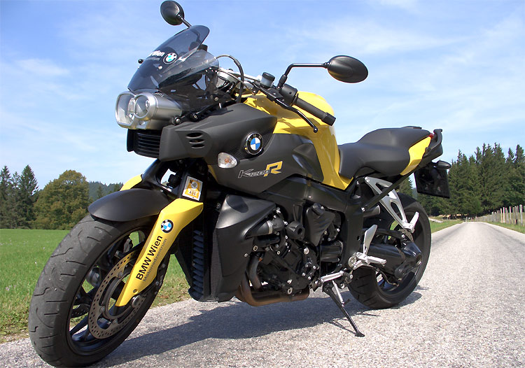 Take the curvy roads through the Vienna forests, deep blue sky, a bike with the power of 163 horses, and 20 degree Celsius: the perfect day for riding the BMW K 1200 R - thrilling power at any speed and in any gear. It has more horsepower and torque an average driver can handle at full range - acceleration that gives you a kick. Even when you decelerate this bike brakes in an astonishing way with its servo-assisted Brembo integral ABS brake system. Because of its intelligent construction the center of gravity is very low – so you get the feeling of handling a much lighter bike. next >>>