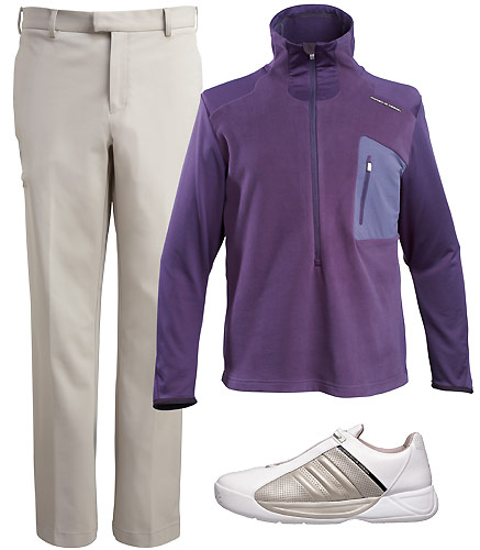 This outfit is styled of selected pieces from Tennis (shoe) and Driving (Flat Front Pant, Zip Fleece).
