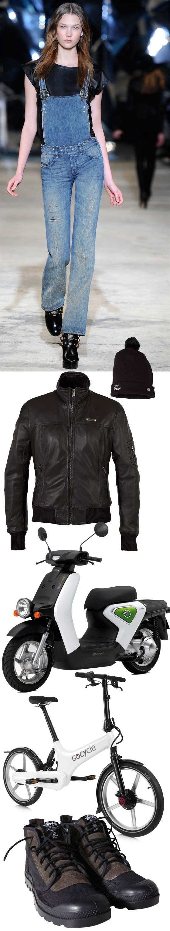 Jumpsuits and black leather t-shirt for women by Diesel Black Gold, FW2010/11.