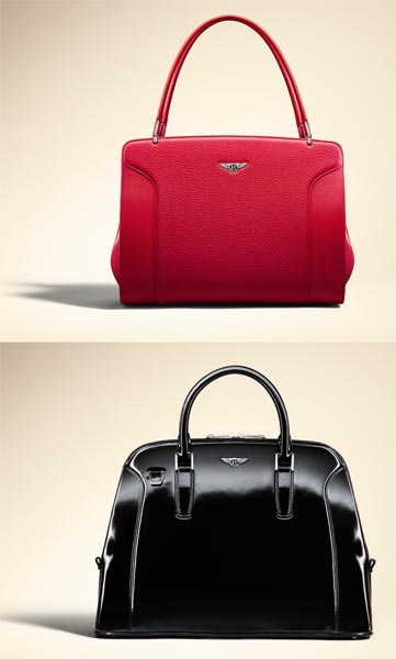 fig.: Bentley Motors will launch the Bentley Handbag Collection at the 'Pebble Beach Concours d'Elegance' automotive event on 18 August 2013 in California. The collection consists of two models and two colors: the 'Barnato' (above, in red) and the 'Continental' (on the image in black). The first mentioned is named after Diana Barnato, "...socialite daughter of Woolf Barnato, one of the original 'Bentley Boys' and chairman of the company. She was an experienced Bentley driver and an accomplished aviatrix. Diana was the first British woman to break the sound barrier and always portrayed both daring and glamour in equal measure," introduces Bentley into the inspiration of the 'Barnato' handbag. "The 'Continental' is named for one of Bentley's famed model lines, used on successive generations of Grand Tourers since 1952 and the underpinning of the brand's current success since the two-door Continental GT coupe was launched in 2003."