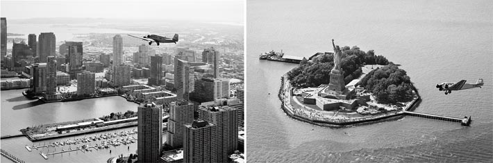fig. below: The Rimowa JU52 crossed the Hudson River and circled the Statue of Liberty in New York; video. Photos: (C) Frank Theisejans; all rights reserved.