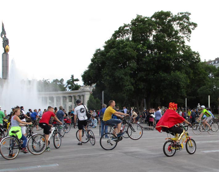 Yesterday on 20 June 2014, the Naked Bike Ride event was held in Vienna. On many websites, the initiative for raising awareness for the impact of cycling in cities on pollution-reduction can be found by searching for World Naked Bike Ride such as on Time which reports about the health aspects of the naked ride and cites a sport physician "Ouch". Some would ask why nakedness on the bike? It shall demonstrate how vulnerable cyclists are.
