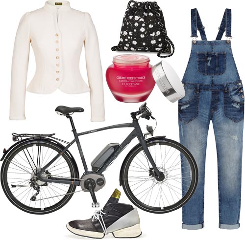 Fashionoffice selection with new items for city cycling: fashion, beauty and bike
