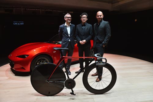 Yesterday on 13 April, Mazda invited to the presentation of two non-automotive art-design-products under the title 'Mazda Design: The Car as Art' at the pre-opening of Milan Design Week. On stage, the brand's latest cars: the iconic two-seater sports car in the new version MX-5, and the compact SUV Mazda CX-3. The art-design-products reflect the style of the new cars: the MX-5 was the inspiration source for a track racer bicycle and the comfortable CX-3 influenced the creation of a sofa. Both designs are derived from the dynamic power 'KODO' concept which was developed from the study of the muscle play of a wild animal on its prey.
