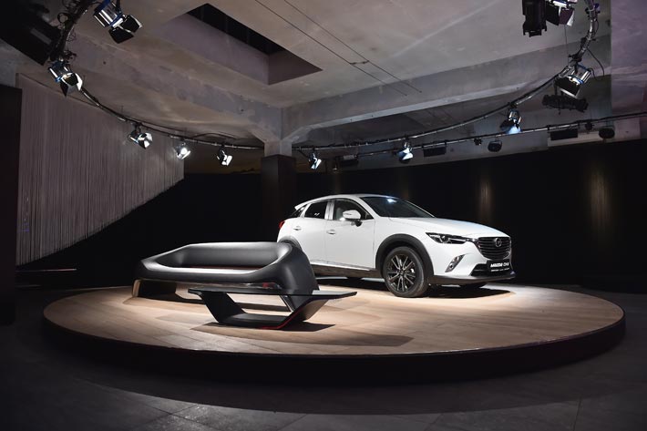 fig. below: The Mazda CX-3 and the 'Sofa by KODO concept' were displayed during the Mazda Design press conference as part of Milan Design Week on 13 April 2015 in Milan, Italy.