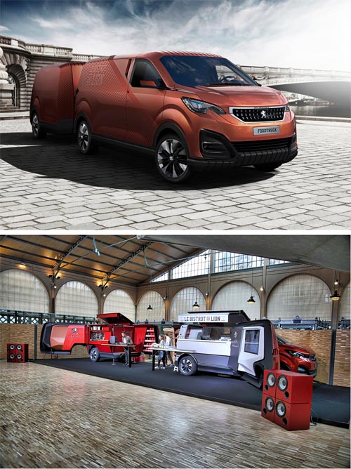 Peugeot Design Lab dedicated the car maker's culinary vehicle to haute cuisine. 'Le Bistrot du Lion' - so the name of the food truck, premiered with a prominent chef at the Parisian market hall 'Carreau du Temple' on 2 April. Chef Sven Chartier (restaurants Saturne and Le Clown Bar in Paris) stands with his style (regional products and organic farming) for the idea of the mobile restaurant.