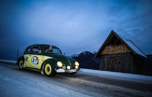 fig.: The image shows a VW Beetle (built 1954, driven by Hans Wilhelm Dercks und Ines Dercks (GER)) at this year's Planai-Classic on 7 January 2016 at Gröbming, region Schladming-Dachstein in Styria (Austria). Photo: