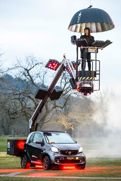 The smart mobile disco bases on the electric car 'smart EQ fortwo' and premiered at the currently until 9 September running exhibition 'Night Fever. Designing Club Culture 1960 – Today' at Vitra Design Museum in Weil am Rhein. The exhibition after the concept and with installations by Konstantin Grcic was the birthplace of the collaborative music-car. The making of video below shows the designer and the smart mobile disco.